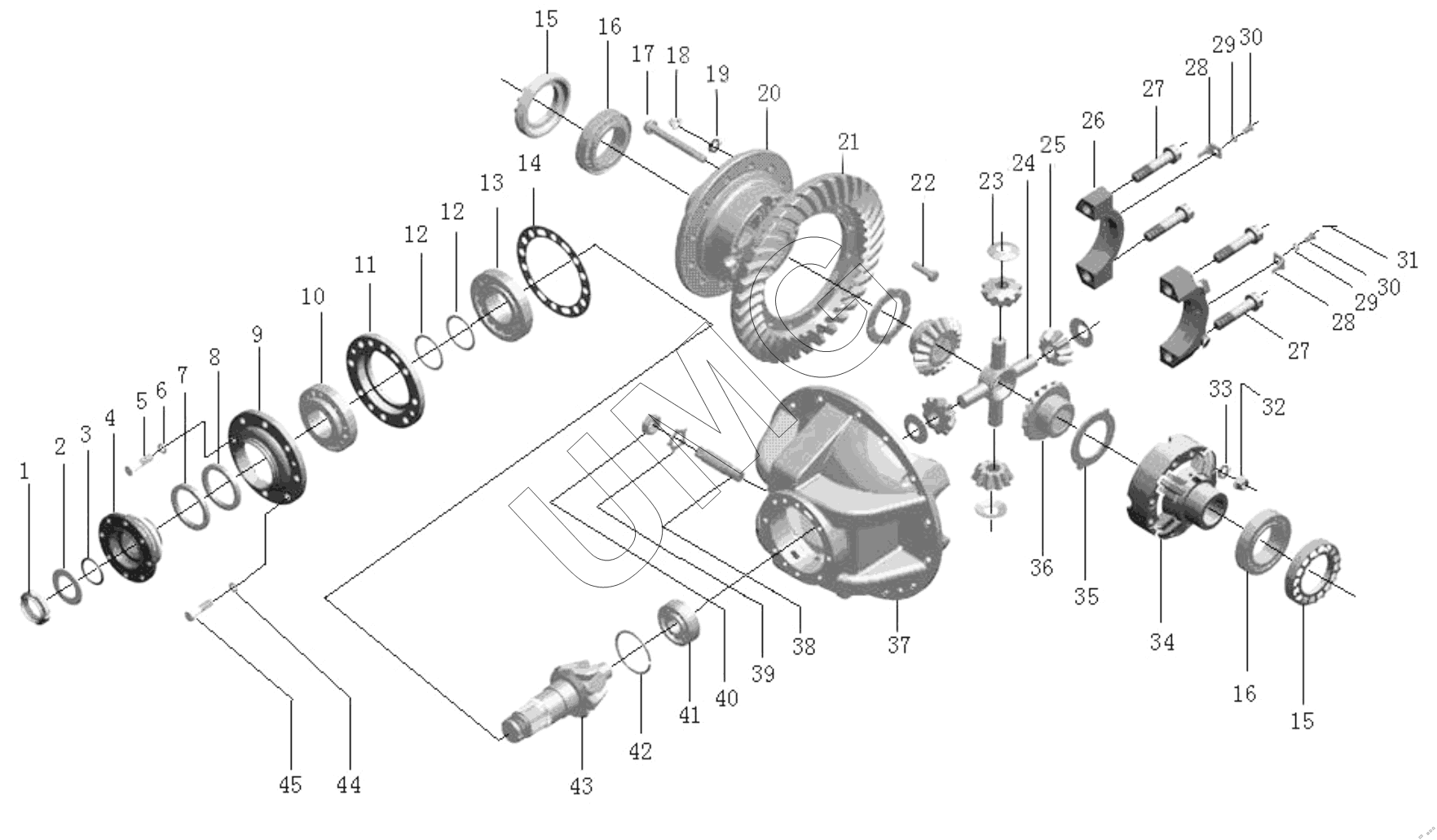 WL50. Главная передача в сборе (устанавливается для изделия Shantui)