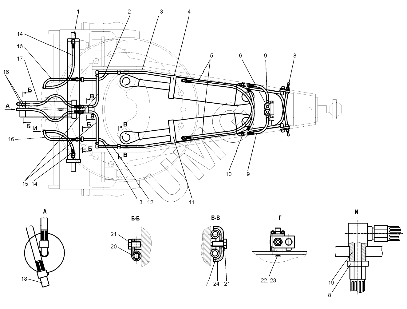 ДЗ-98В. Гидросистема отвала (ДЗ-98В.43.18.000);Mouldboard hydraulic system