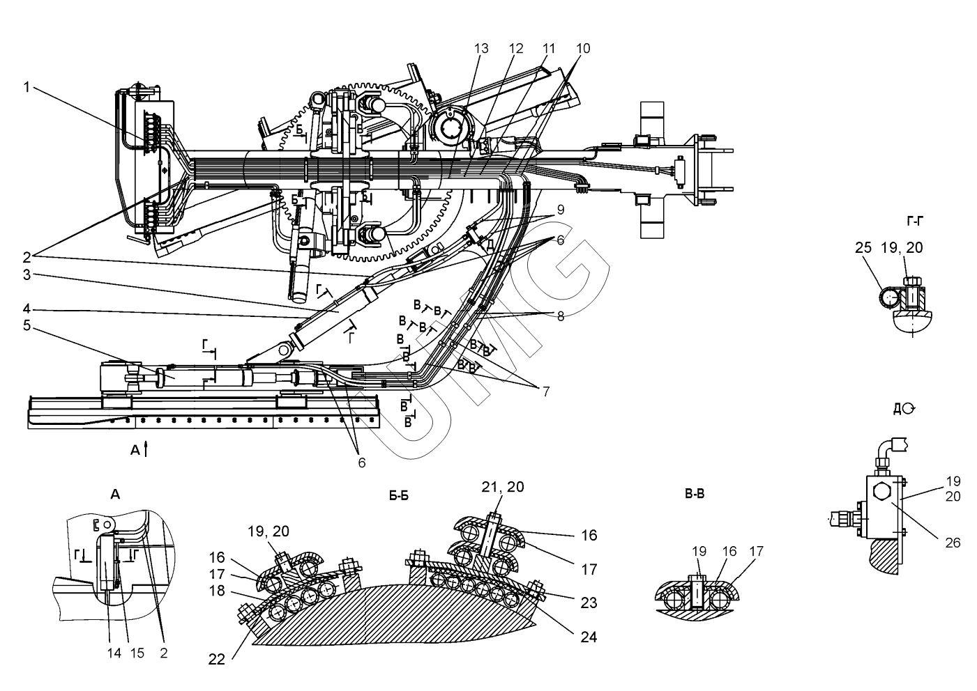 ДЗ-98В. Гидросистема бокового отвала (ДЗ-98Б0.43.10.000);Side mouldboard hydraulic system
