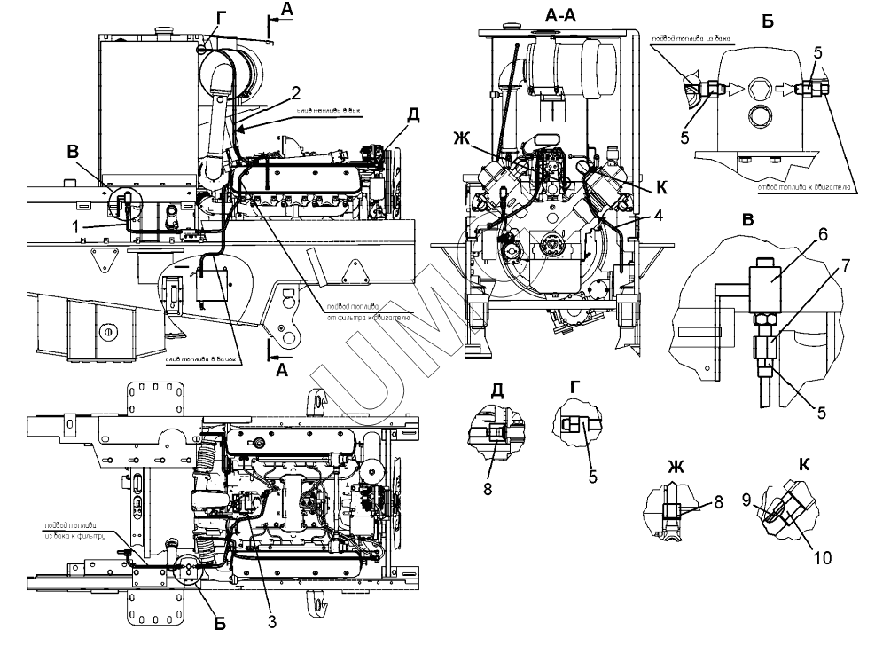 ДЗ-98В. Установка топливопроводов (ДЗ-98М2.31.40.300);Installation of fuel lines