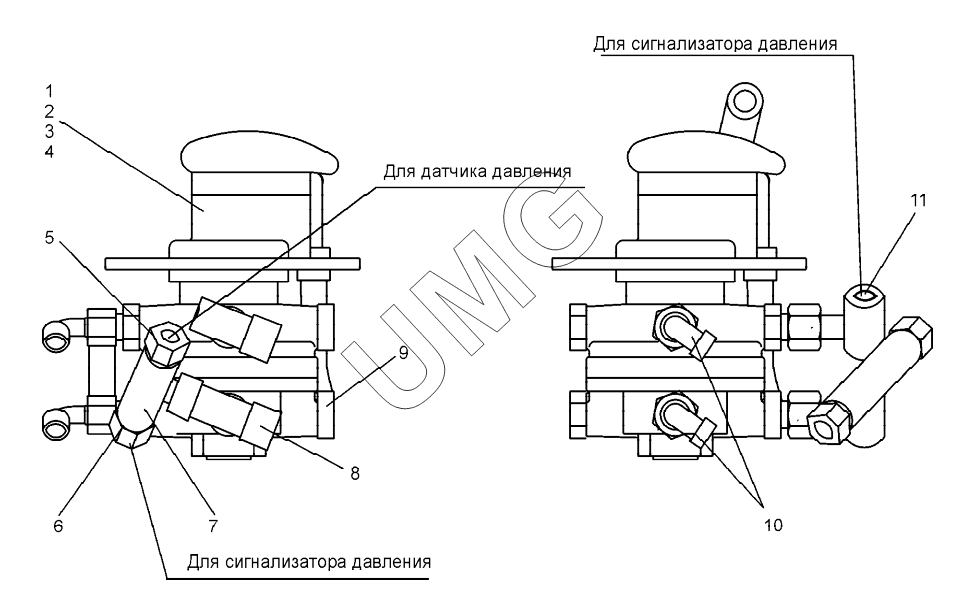 | 4 | 100 3514008 | Кран тормозной двухсекцион-ный с рычагом | |