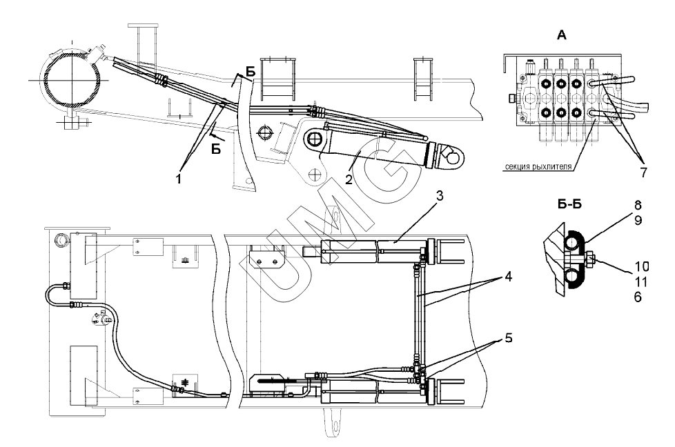 ДЗ-250 (ГМП). Гидросистема рыхлителя (ДЗ-98М1.44.00.000)