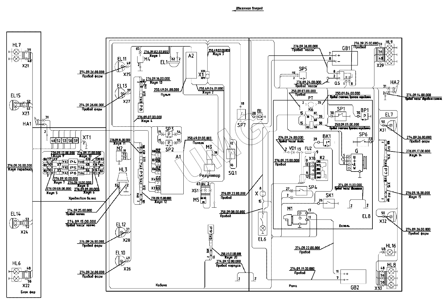 ГС-14.02. Схема электрическая принципиальная (для автогрейдера с мостом фирмы ZF)