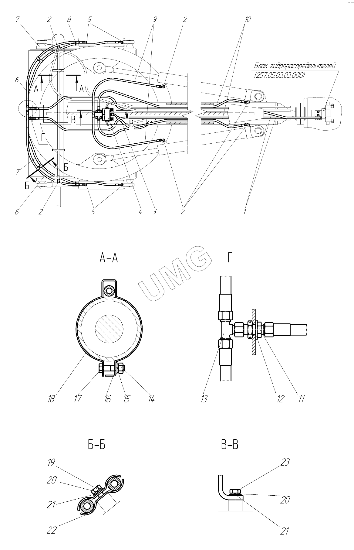 TG-250 (782-80). Гидросистема рабочего оборудования 730.15.04.00.000-82