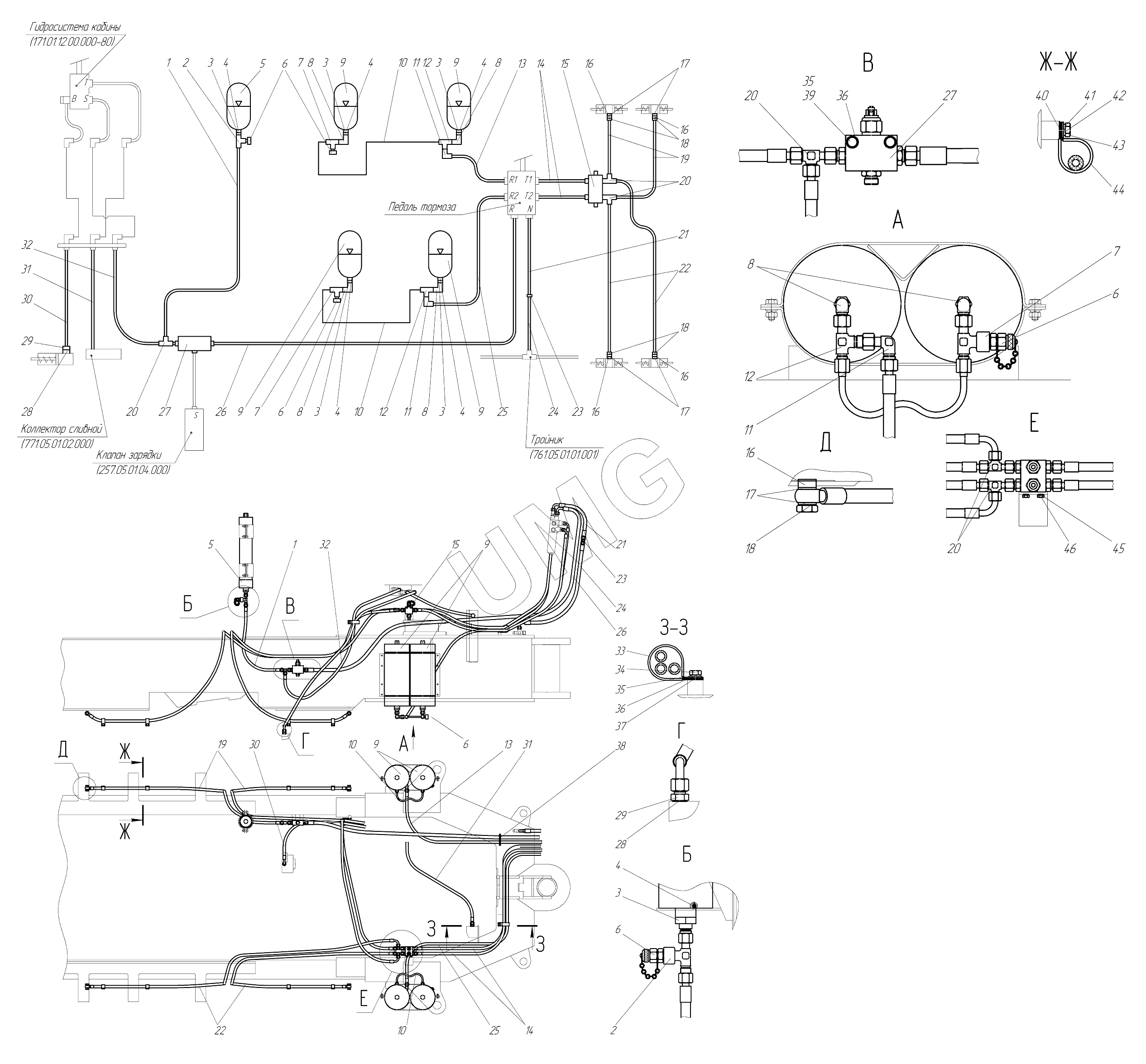 TG-250 (782-80). Гидросистема тормозов 780.13.00.00.000-80