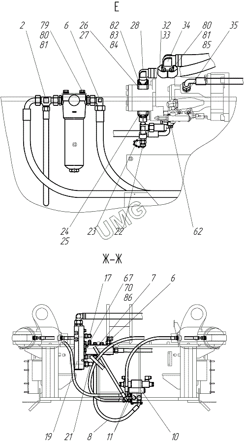 TG-250. Гидросистема рамы подмоторной
