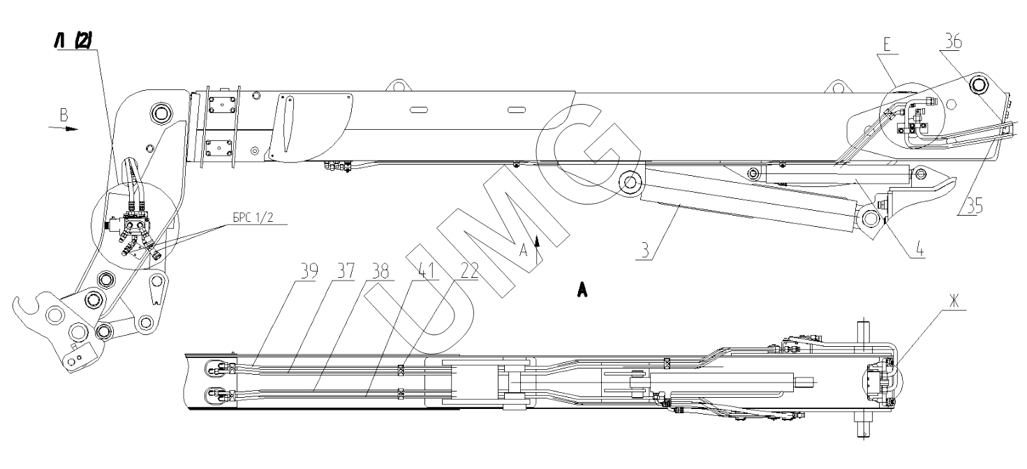 TLH 4007-12. Гидрооборудование стрелы без дивертора (с БРС). 3507-00-81.00.000-01