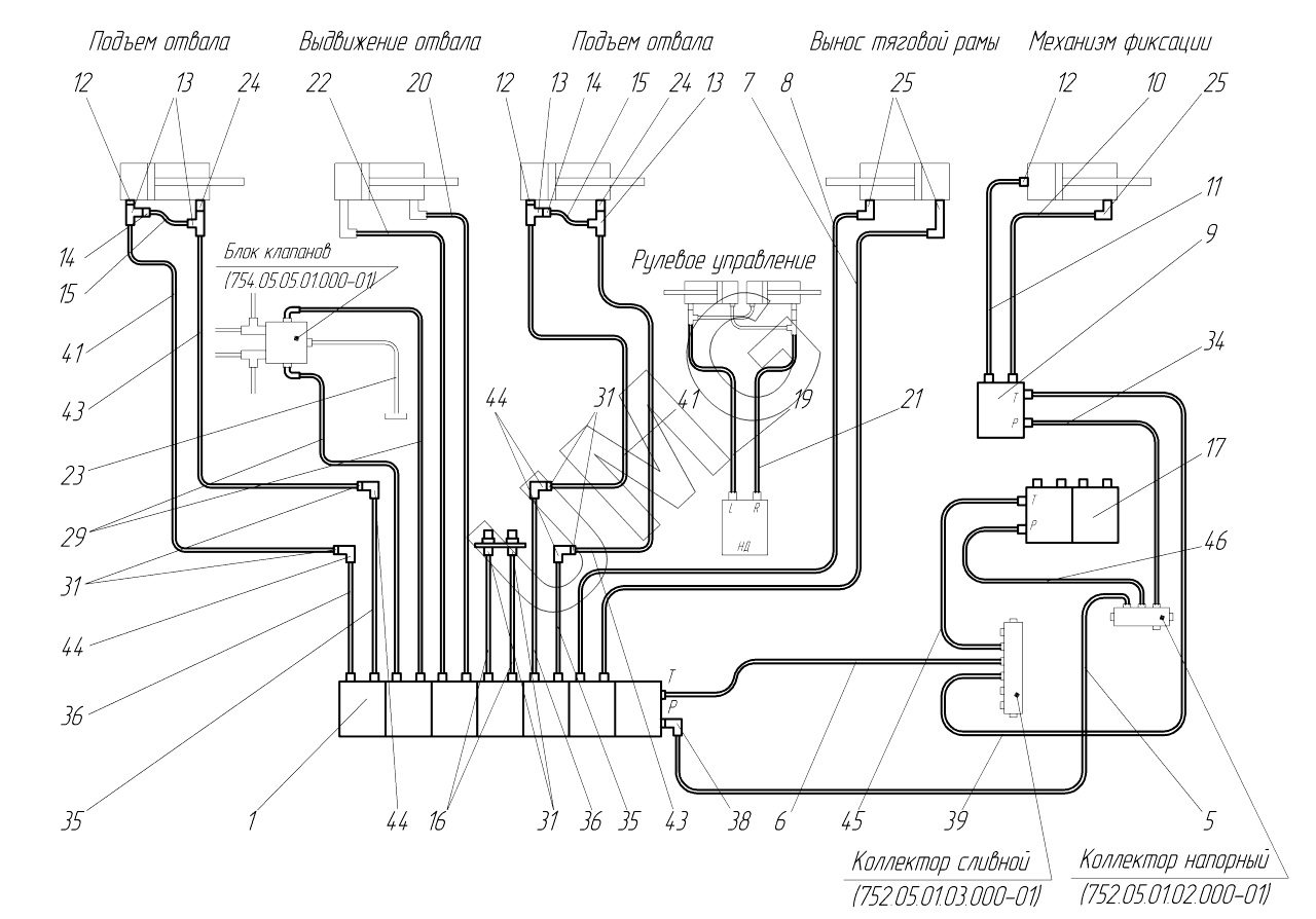 АГ-180 (с ГМП). Гидросистема рама передней 753.05.03.00.000-02