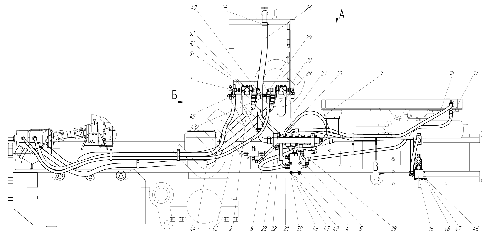 АГ-180 (с механической КПП). Гидросистема рамы подмоторной 754.05.01.00.000